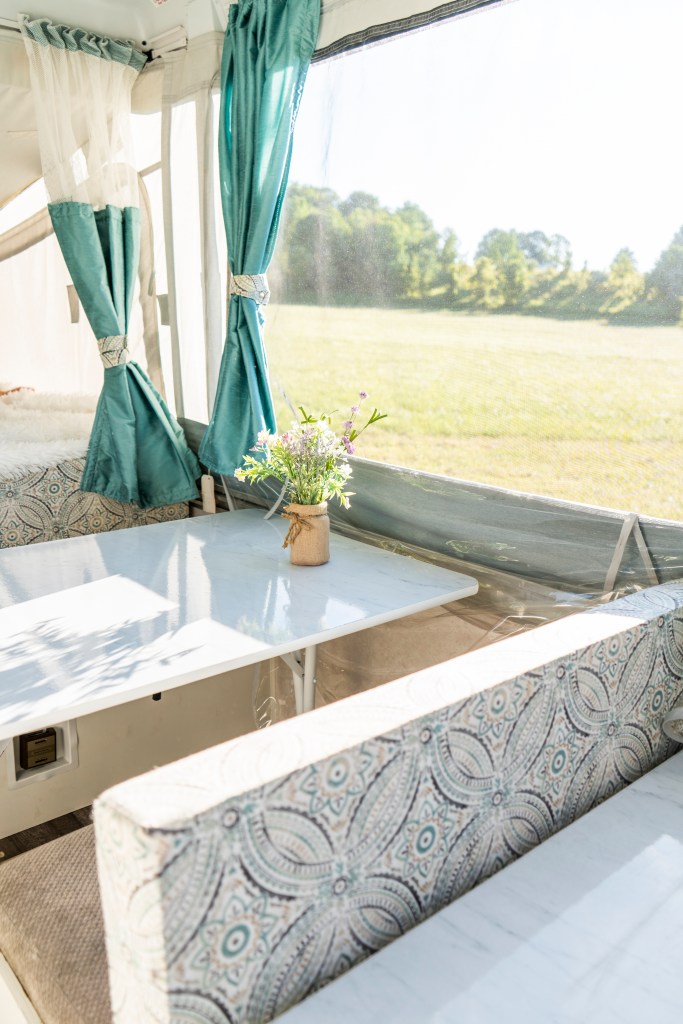 The name Epoufette means “ a place of rest” and this describes this light bright, tastefully updated pop up camper. This is perfect for the family that wants to get out and explore the great outdoors of Northern Michigan on a budget but retain quality amenities . Great for those cool summer nights and let the stars and that crisp lake breeze lull you to sleep. Has all the amenities needed to have a great week at a state park or even just parked at the family cabin for an extra guest house. The camper will be all set up upon your arrival and taken down upon your departure.