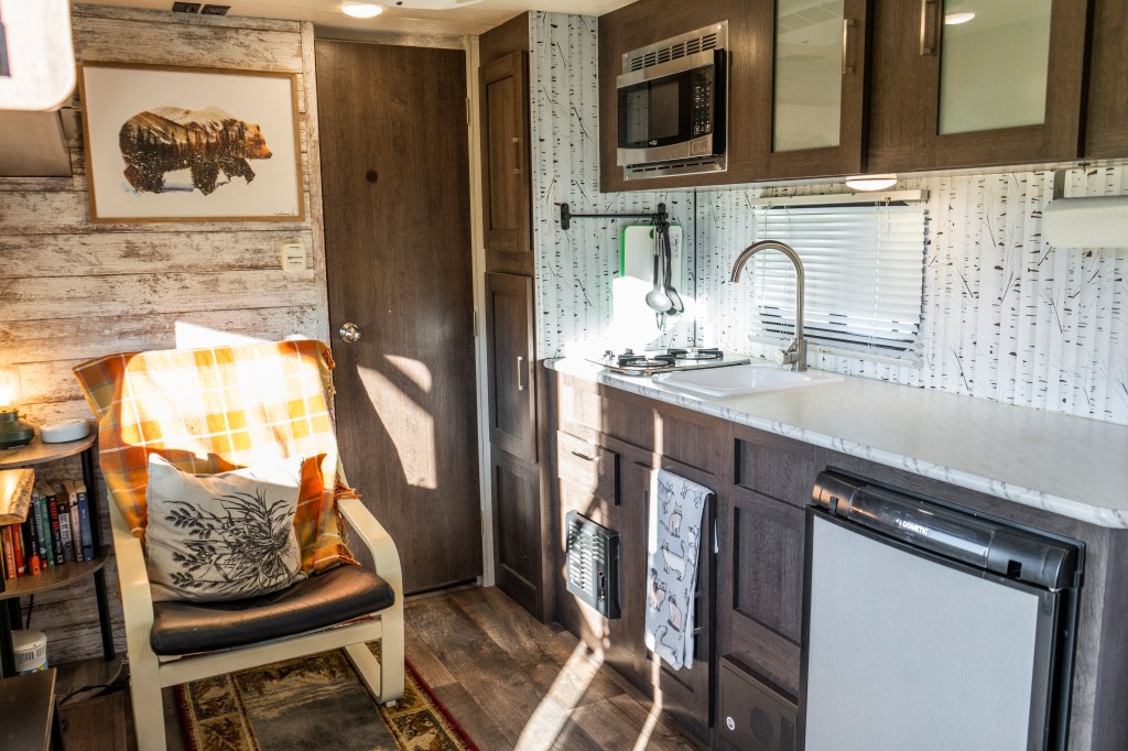 This is the light and bright cozy Salem FSX 187RB, it has a great Murphy bed and updated interior with personal touches to make the camper feel more like a off grid Adirondack cabin in the Keweenaw woods than a camper, perfect getaway for a solace retreat and for the couple that wants to wake up to a warm cozy cup of coffee and go out and conquer what Northern Michigan and its breweries, lake views, trails and rivers have to offer. Perfect for the solo explorer and trusty fur companion as well. Solar and generator can be provided upon request, the camper will be set up prior to arrival and picked up after your departure to ensure you enjoy camping the way it was intended..STRESS FREE.